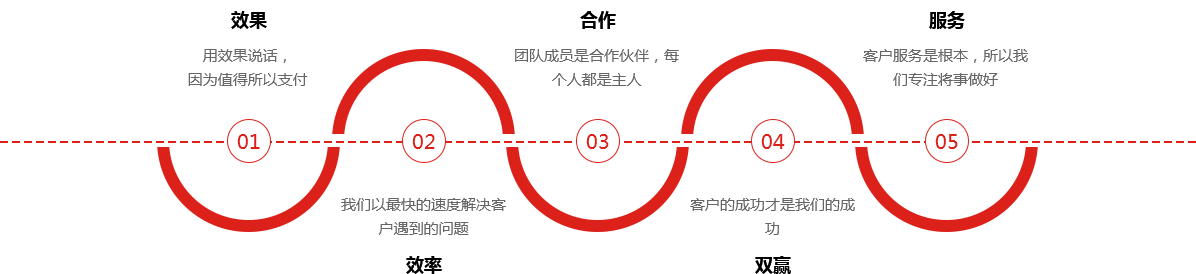 效果:用效果說話,因?yàn)橹档盟灾Ц?br>效率:我們以最快的速度解決客戶遇到的問題